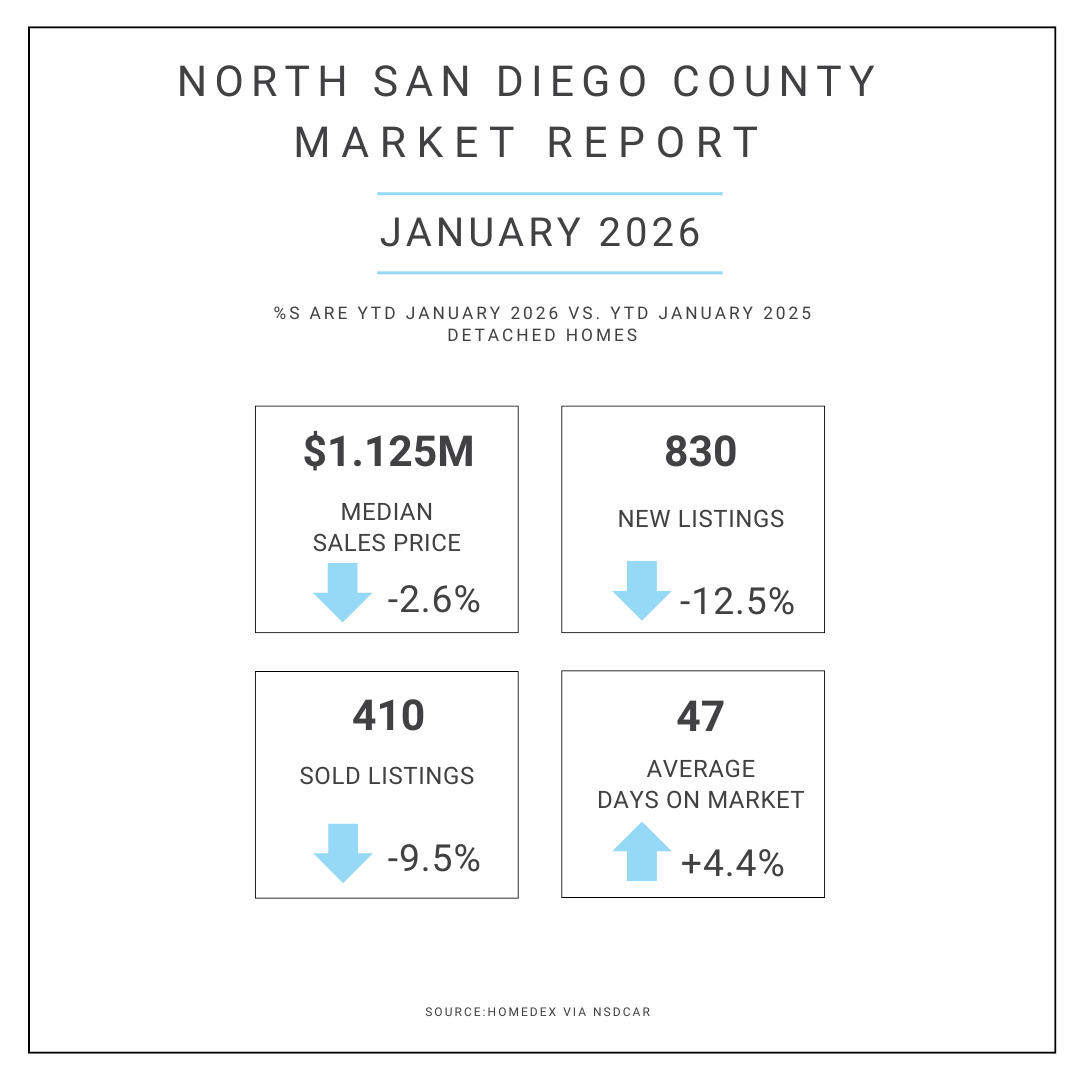 The North San Diego County housing market opened the year with a slower, more measured start which is typical for January, but still worth noting for the drop in activity.